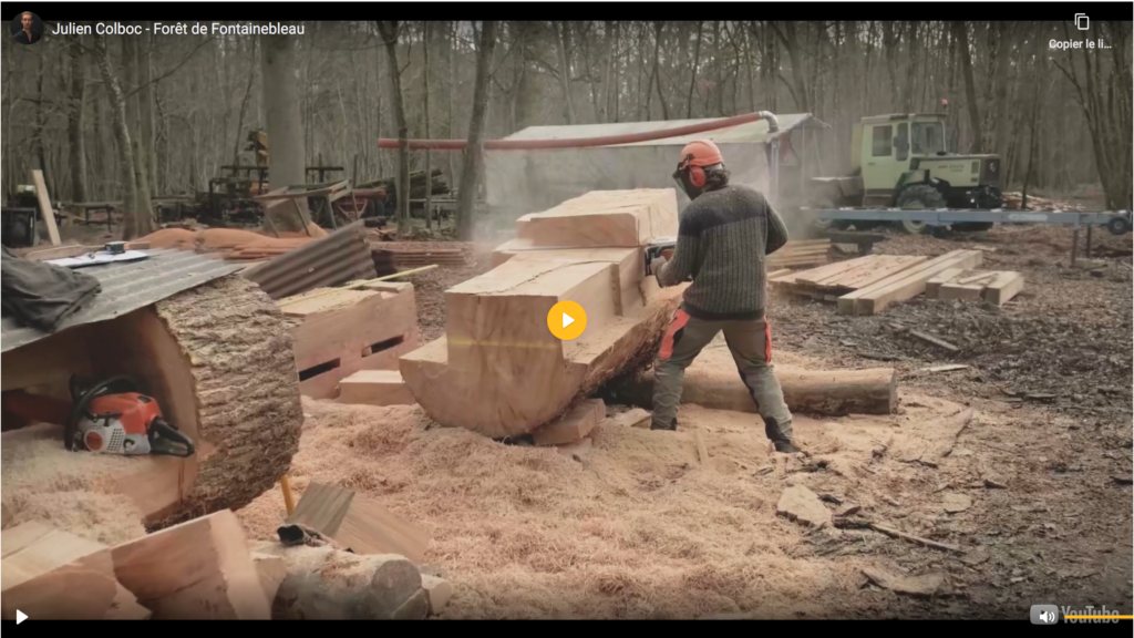 Je viens de terminer un chantier commencé il y a un mois. Il s’agissait de valoriser 2 chênes centenaires en sculpture sur pied et banc sculpté in situ. C’est une commande du CEA centre de Paris Saclay site d’Évry-Courcouronnes 91, dans une parcelle boisée au pied des bâtiments. Ces derniers abritent deux grands centres nationaux de recherche de l’Institut de Biologie François Jacob du CEA : le Centre National de Recherche en Génomique Humaine (CNRGH) spécialiste du séquençage et génotypage pour l’étude des maladies humaines, et le Genoscope, dédié à la génomique environnementale et au développement de solutions biologiques pour remplacer la chimie de synthèse rattachés à l’Institut de biologie François Jacob de la Direction de la Recherche Fondamentale au CEA. J’ai donc proposé de sculpter dans ces arbres une hélice ADN en accord avec les responsables du projet. Du tronc sculpté sur pied émerge une hélice ADN comme une fusion entre l’arbre et la recherche.
